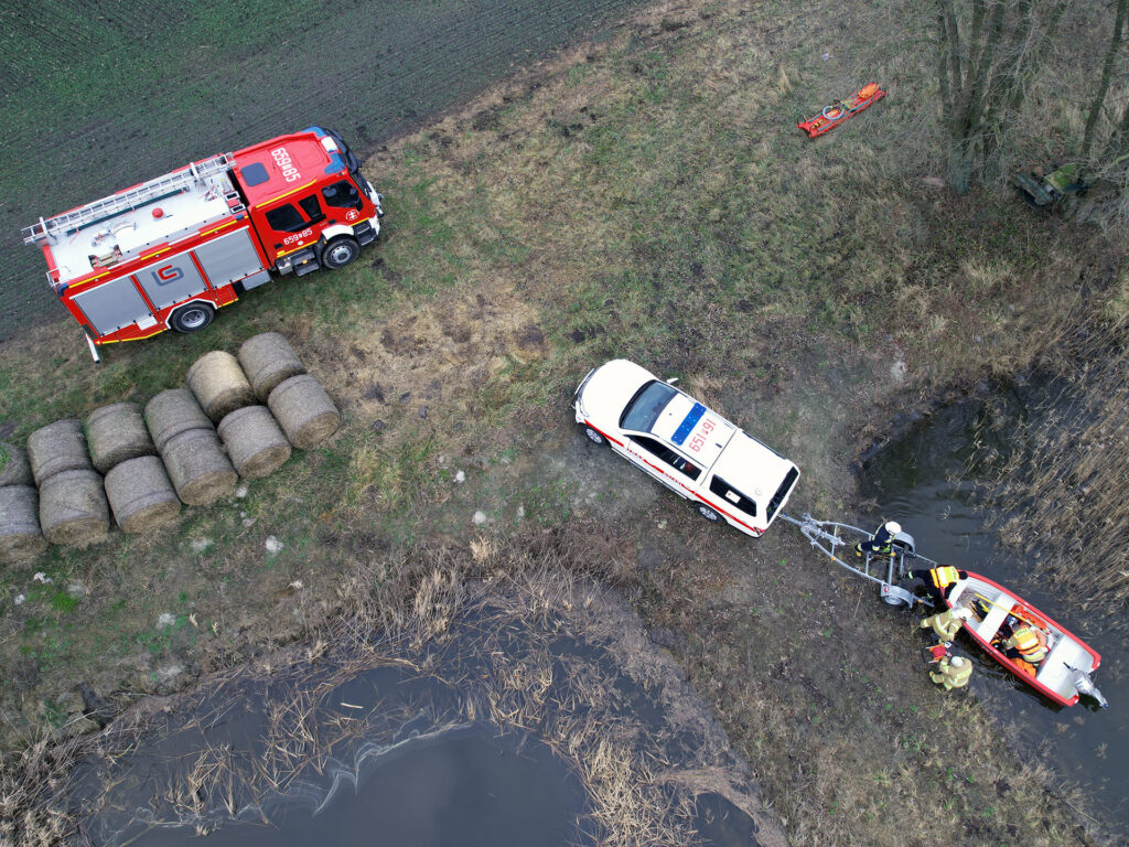 W trakcie działań w jednym ze zbiorników wodnych została ujawniona kurtka. Na miejsce wysłano operatora z dronem, który potwierdził, że pod taflą wody znajduje się człowiek.