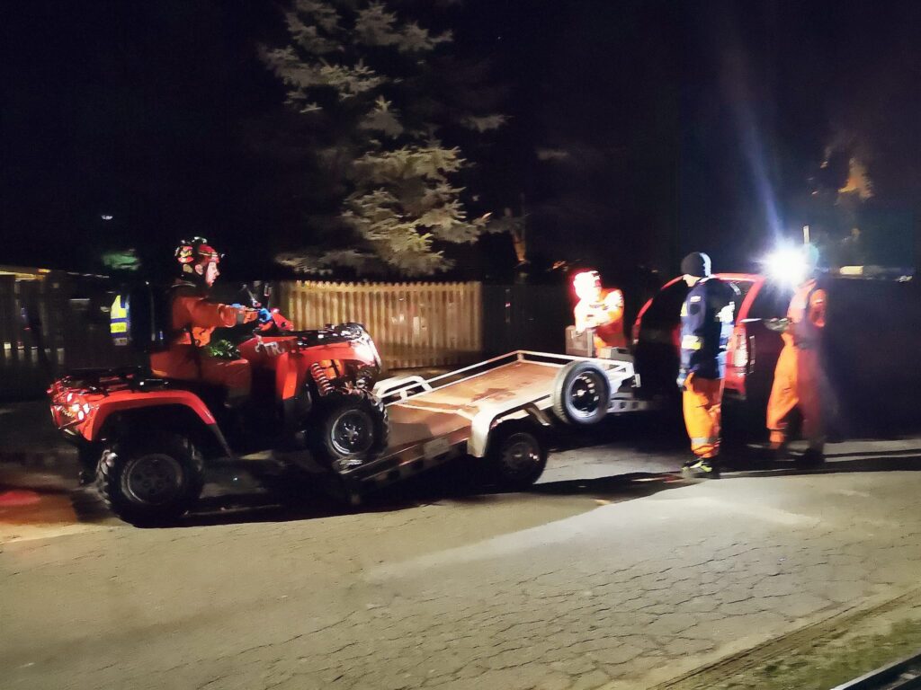 Na miejscu został przeprowadzony wywiad uzupełniający oraz rozpoczęliśmy penetrację terenu z wykorzystaniem quada. Razem z policjantami, strażakami (w tym z zespołami z psami ratowniczymi K9 Team SGPR Poznań) prowadziliśmy poszukiwania sprawdzając wyznaczony obszar. W powietrzu znajdował się dron wyposażony w kamerę termowizyjną ze Straży Leśnej.